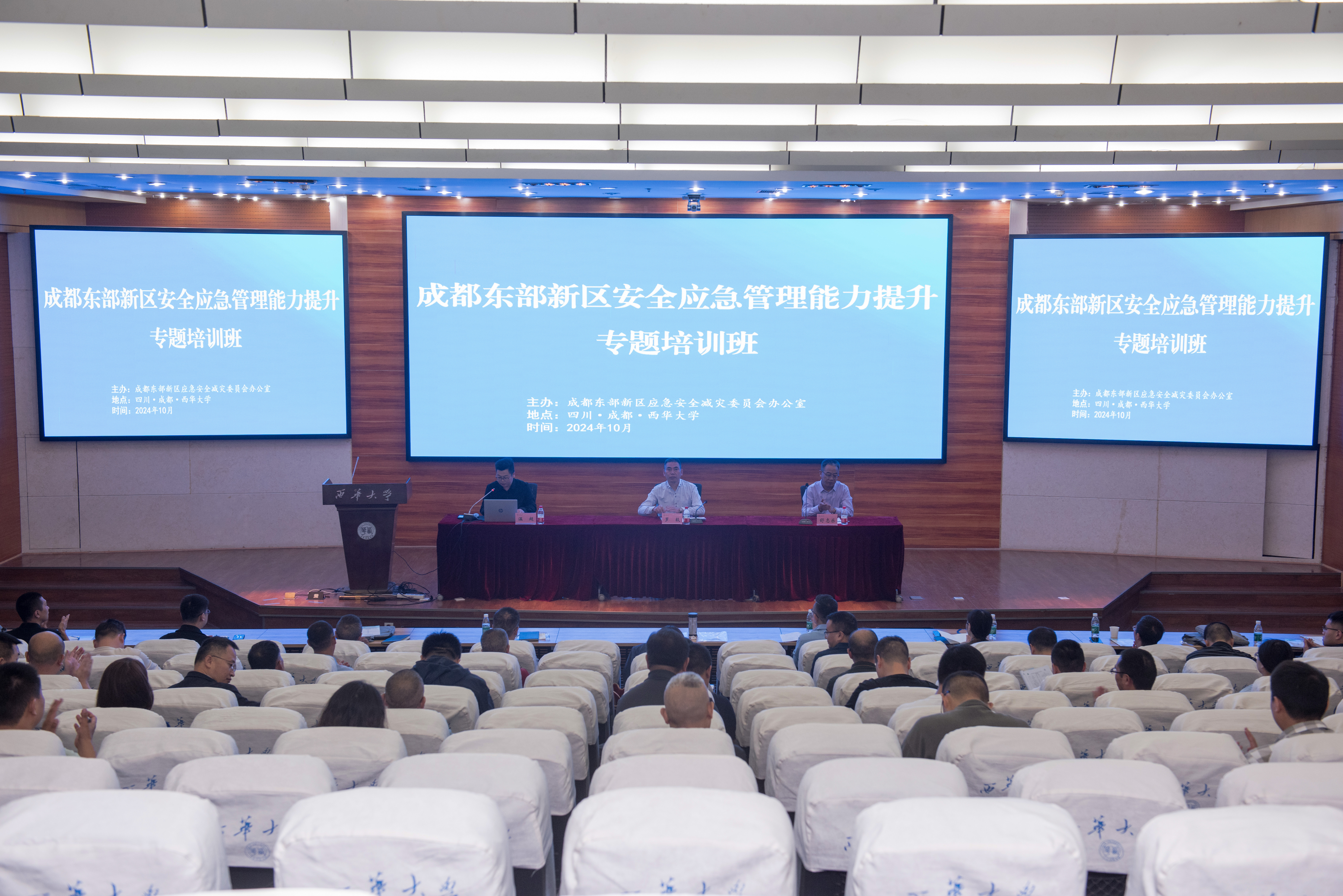 10月15日,成都东部新区安全应急管理能力提升专题培训班开班仪式在图书馆报告厅一厅举行。成都东部新区应急安全管理局安全总监罗毅、西华大学应急管理学院院长舒志乐出席开班仪式。